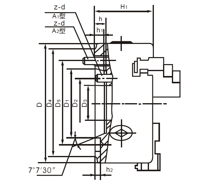 D | D1 | D2 | D3 | D4 | D5 | H1 | h | h1 | h2 | d1 | z-d |