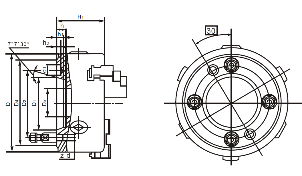 D | D1 | D2 | D3 | D4 | H1 | h | h1 | h2 | d1 | z-d |