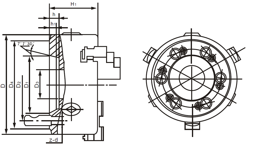 D | D1 | D2 | D3 | D4 | H1 | h | H1 | z-d |