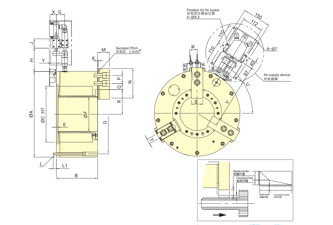兩段式行程,可節(jié)省夾持所需要時(shí)間。