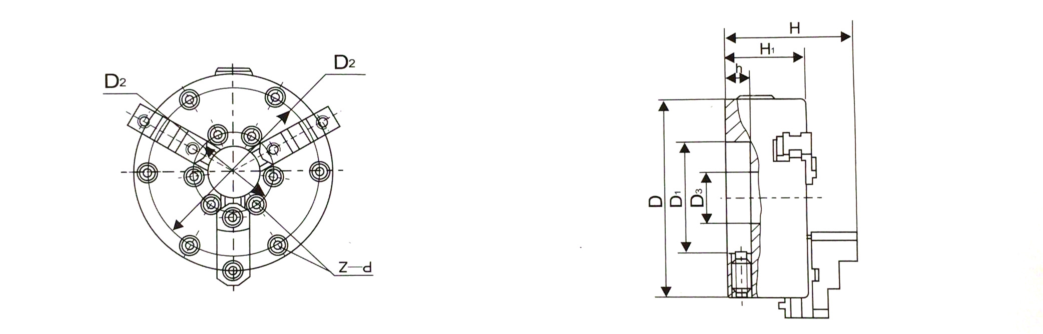 D | D1 | D2 | D3 | H | H1 | h | z-d |
