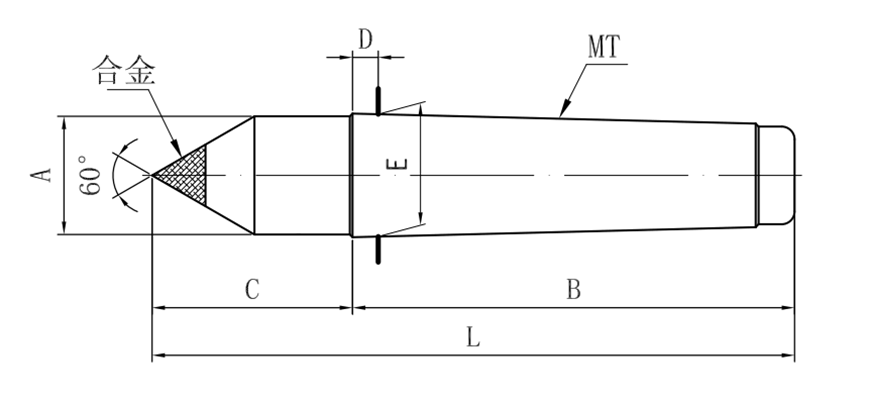 頂尖軸頭部鑲嵌優(yōu)質(zhì)鎢鋼,硬度 HRA93-94。