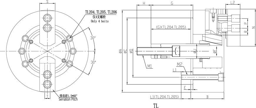 wedge-hook type 2 jaw closed center power chuck. Suitable for irregular