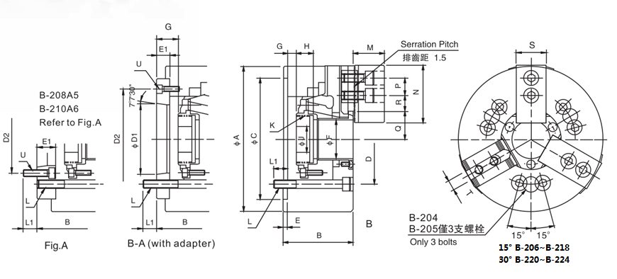 It‵s WEDGE-HOOK type 3-jaw power chuck with the large through-hole.