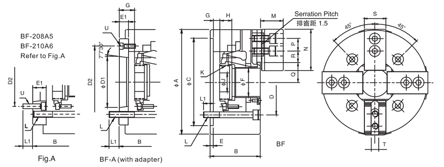 | BF-224 A20 | M215×3 | 8-M24 | 35 | 35 | 73 | 180 | 60 | 139.9 | 133.9 | 87.5 | 24.5 | 65 | 25 | 3-M10 |