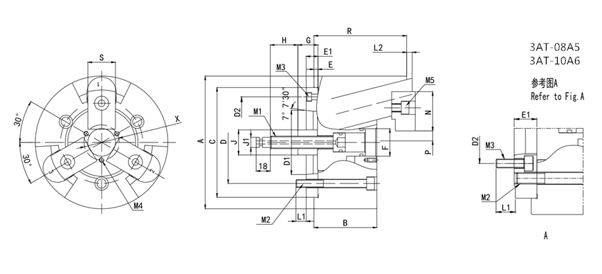 It‵s a pin-arbor draw down type 3 jaw close center power chuck.