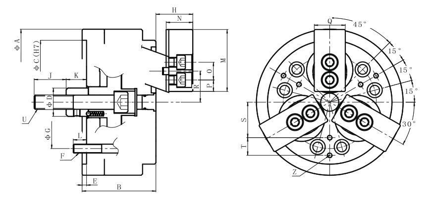 三爪內(nèi)撐式后拉中實(shí)動力夾頭