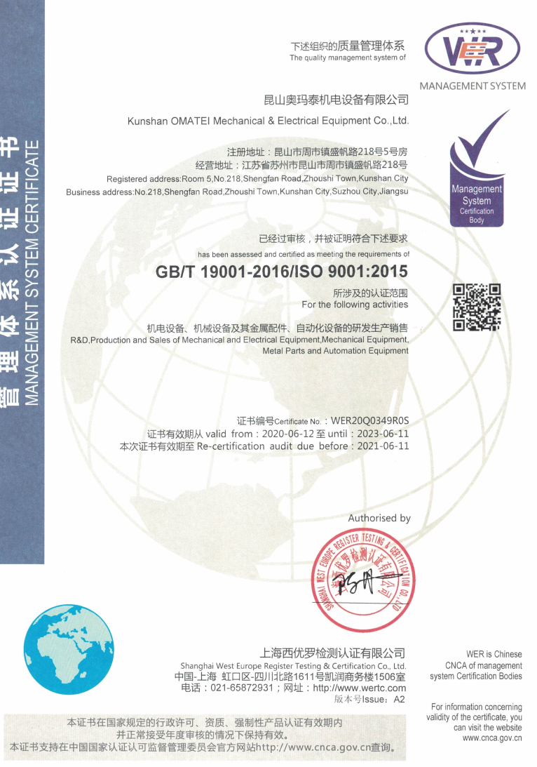 通過全員的努力學(xué)習(xí)并認真貫徹iISO9001質(zhì)量管理體系的標(biāo)準(zhǔn)與要求,我司與2020年6月11日正式通過認證。