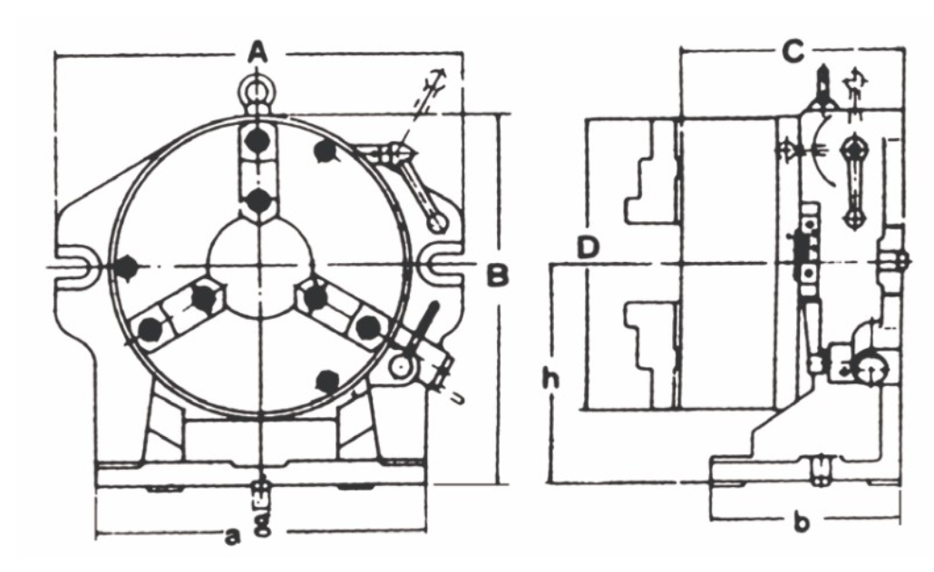 Model Direct indexing 3 jaw Width of key(S) Outside jaw 3 jaw inside hole Inside hole of