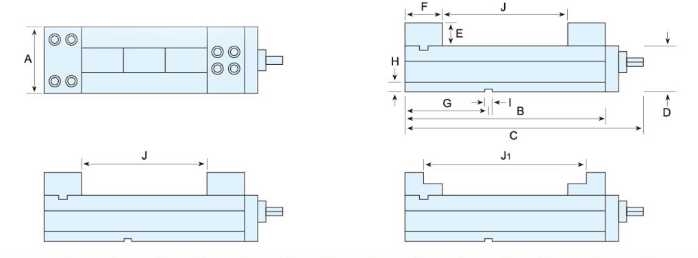 MODEL A B C D E F G H I J J1 N .W. G.W. Clamping force