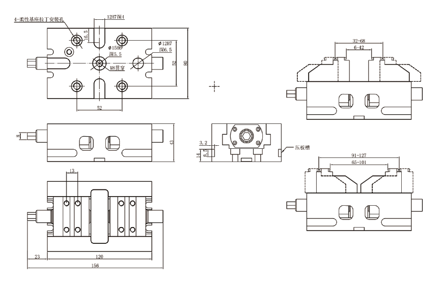鉗口寬度 | 鉗口高度 | 扭矩(Nm) | 夾緊力(KN) | 重復(fù)定心精度(mm) | 鉗體材質(zhì) | 鉗口材質(zhì) |