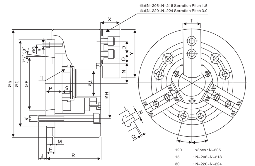 N-200A型夾頭是依 ASA B5.9 A型主軸標(biāo)準(zhǔn)而設(shè)計(jì)。