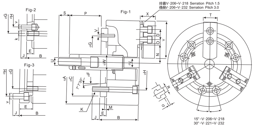 *注:V-212另有齒距為3.0*60度的規(guī)格;Note: The serration pitch 3.0*60 degree is available for V-212 model