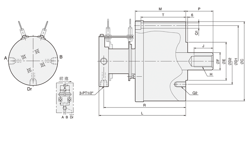 Built-in check valve and proximity switch brackets. In case of power failure occur which prevents the workpiece from flying out.